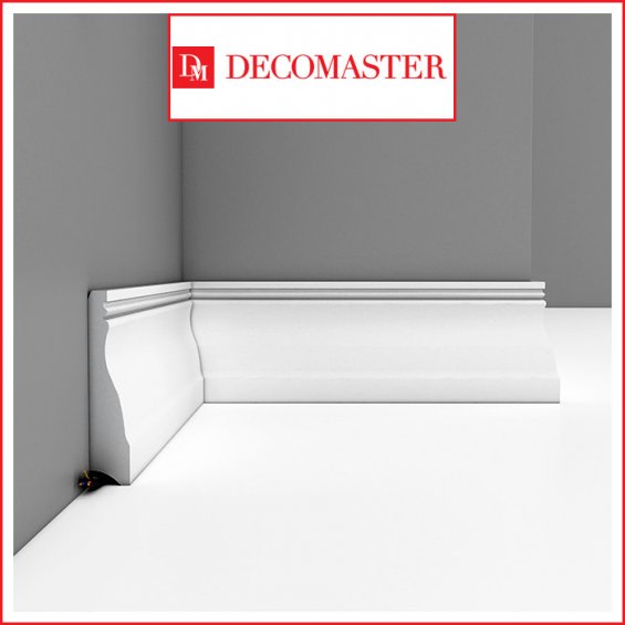 Декоративный плинтус Decomaster D193 (70*16*2000) – это элемент безопасный и эстетичный, можно сочетать с натуральными декорами делая интерьеры более живописными и привлекательными. Изделие влагостойкое, белого цвета. Изготавливается из дюрополимера, что позволяет придать плинтусу прочность и постоянную форму на весь период эксплуатации. Если есть необходимость плинтус можно окрасить в любой цвет. Для монтажа профиля рекомендуется использовать монтажный клей либо саморезы.