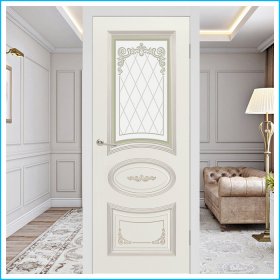 Поверхность полотна обрабатывается грунтом и окрашивается в три слоя полиуретановой эмалью с нанесением патины цвета «белое золото»., на которую в будущем может быть нанесен любой желаемый цвет. Эмаль покрыта защитным лаком, что позволяет сохранить прочность, экологичность и отличный внешний вид двери. Благодаря защитному покрытию, эмаль не трескается, не меняет цвет, и сохраняет свои эстетические свойства.