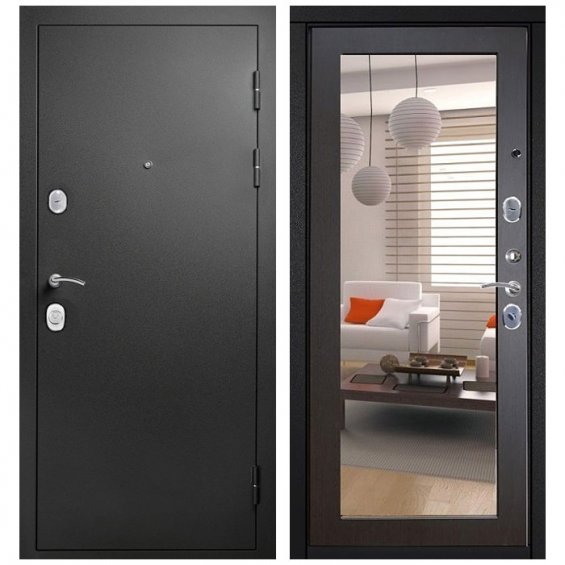 Входная дверь Стальной Стандарт S1 Муар Венге Зеркало (стальная, металлическая, взломостойкая)