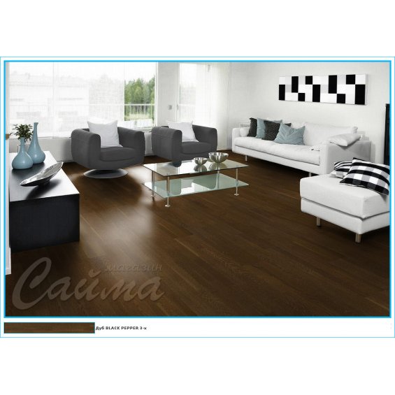 Паркетная Доска Карелия Дуб Black Pepper Трехполосный